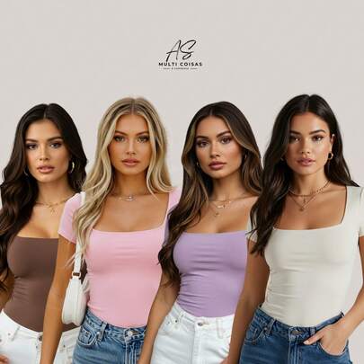 Review: Blusinhas bem bonitas e o material é muito bom. Comprei no tamanho P e serviu perfeitamente