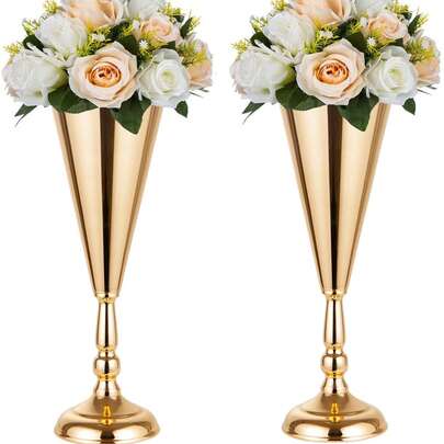 两件套华丽风格金属婚礼喇叭花瓶,金色飓风造型桌面摆件,适用于周年庆典、派对、生日、家居装饰 - 优雅的喇叭形花瓶,无需用电 - 2pcs - 查看 1