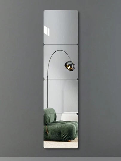 4 件套大号 30 厘米圆角全长亚克力墙贴镜,自粘式,适用于门后、衣柜,无需钻孔,最佳礼物 - 灰色 - 查看 1