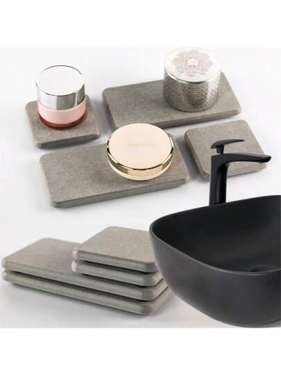 4 件套吸水硅藻土托盘、硅藻土厨房皂碟、洗手液架、吸水石用于现代家居植物和洗漱用品家居浴室装饰秋季装饰返校 - 彩色 - 查看 1