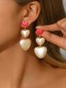 2 件时尚经典欧美风格鹰嘴水滴形、水钻螺旋、圆环结、圆盘珍珠花耳钉、人造珍珠设计首饰、镀金合金、适合女性日常装扮、节日派对礼物、夸张弧形水滴形