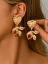 2 件时尚经典欧美风格鹰嘴水滴形、水钻螺旋、圆环结、圆盘珍珠花耳钉、人造珍珠设计首饰、镀金合金、适合女性日常装扮、节日派对礼物、夸张弧形水滴形
