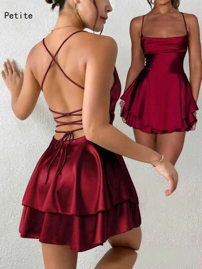 性感迷你褶皱吊带露背抽绳细肩带修身连衣裙,适合夏季酒吧、派对和居家穿着