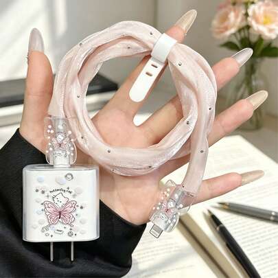 防震猫咪主题数据线保护套,猫咪蝴蝶造型充电适配器及数据线保护套套装,耐用型18-20W苹果充电线保护壳,防断裂数据线整理器,兼容苹果17/16/15/13/14充电器,春季母亲节生日礼物