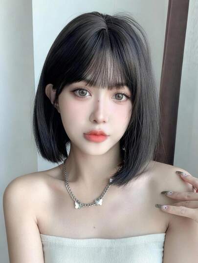 短款波波头假发 12英寸棕色直发假发 自然日常假发 合成耐热假发 - 自然黑 - 查看 8
