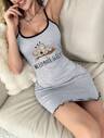 女式休闲可爱卡通树懒印花细肩带吊带睡袍