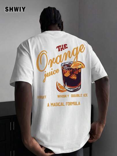 Shwiy 男士夏季果汁主题地区特色柑橘水果印花极简主义图案T恤,轻薄休闲,适合春夏穿着 - 白色 - 查看 1