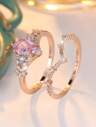 2 件优雅椭圆形粉色方晶锆石镀玫瑰金女士戒指套装,奢华婚礼、派对、日常佩戴,闪亮配饰