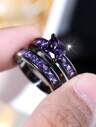 奢华矩形切割紫色合成锆石戒指,适合情人节节日派对日常佩戴、闪亮配饰、妈妈、母亲、母亲节、礼物
