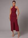 Silquee 女士优雅派对长袖性感高领露背连衣裙,金属扣装饰,有勃艮第红和紫红色可选,弹性针织面料,适合鸡尾酒会、浪漫约会、秋冬休闲装、正式派对、婚礼、伴娘礼服、晚礼服、万圣节、圣诞节女士晚礼服女士优雅连衣裙女士连衣裙女士舞会礼服女士正式