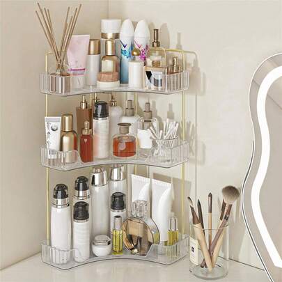 单角浴室台面收纳盒,适用于90°角,可用作梳妆台托盘、化妆品收纳盒、浴室台面收纳盒、厨房调料架和香水瓶托盘,适用于度假海滩、浴室、卧室等场合,大容量,可作房间装饰和化妆包使用。 - 無色 - 查看 3