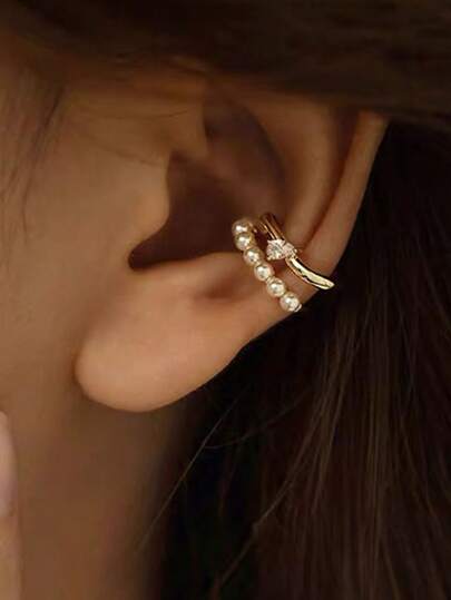 假珍珠單個夾式耳環,適用於沒有耳洞的耳朵 - 耳骨夾 - 查看 1