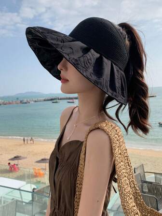 1 件,纯色波西米亚风休闲串珠草编巴拿马帽,镂空宝石装饰,时尚太阳帽,百搭,工作和通勤皆宜