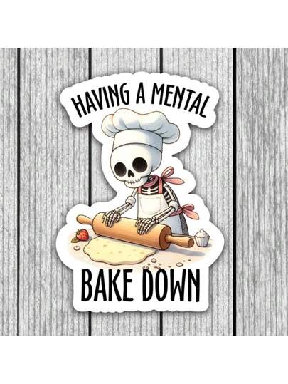 骷髅烘焙贴纸,“我正在精神烘焙”幽默乙烯基贴花,有趣的厨房贴花,给面包师和厨师的礼物,恐怖烘焙贴花 - 彩色 - 查看 1
