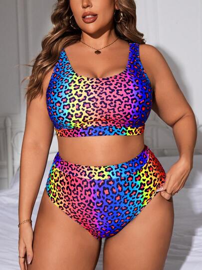 Slaydiva 2 件套加大码女式 2025 年款豹纹休闲比基尼套装豹纹比基尼女士加大码泳装豹纹比基尼 2 件套加大夏季 - 彩色 - 查看 1
