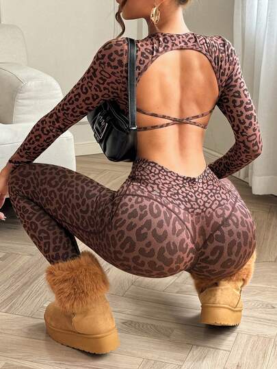Slayform 女士长袖豹纹性感健身瑜伽T恤 - 彩色 - 查看 4