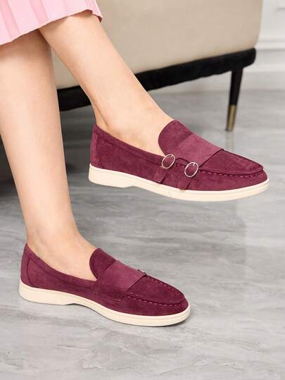 Sleekvia 25款新款女士乐福鞋,平底一脚蹬,舒适软底休闲鞋 - 玫紅色 - 查看 1
