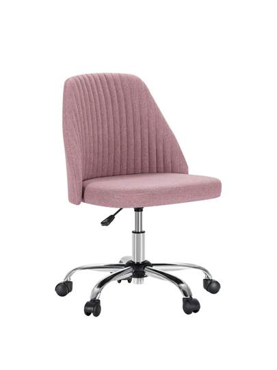 Small Office Chair No Arms,Small Desk Chairs With Wheels,Comfy Office Chair,Height Adjustable Office Desk Chair, Swivel Modern Cotton Linen Vanity Chair,Rolling Task Chair, Pink - 粉色 - 查看 1