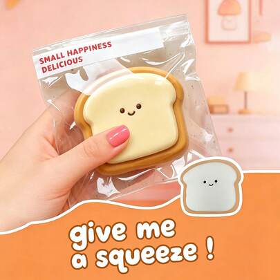 慢回弹吐司造型捏捏乐玩具,柔软面包造型挤压玩具,可爱减压玩具,舒缓压力焦虑玩具,可爱脸部造型捏捏乐,适合儿童和成人,派对礼品(随机包装袋)