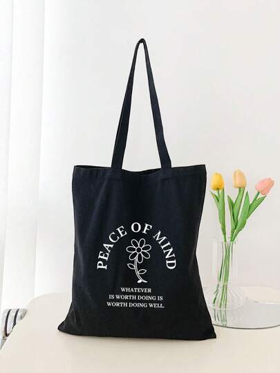 小號購物袋字母和花卉圖案預科生書包適合畢業生、青少年女孩、新生、大二、大三和大四學生、大學和高中,非常適合戶外、旅行和返校 - 黑色 - 查看 1
