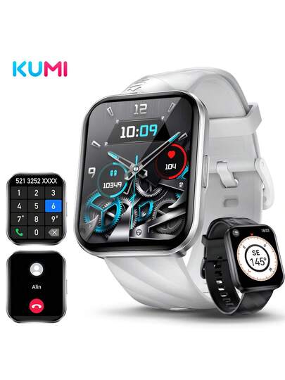 Kumi智能手錶,1.96"高清屏幕,bt通話,多重信息提醒,e指南針,100+運動模式,nfc門禁卡,血壓&心率&睡眠&血氧監測,運動手錶適用於android和ios手機,ip68防水,男女運動健身手錶 - 銀色 - 查看 1