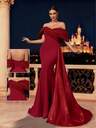 Smilprince 新款优雅勃艮第正式晚礼服,紧身露肩荷叶边,蝴蝶结缎面,优雅派对,女士舞会礼服,婚礼宾客礼服