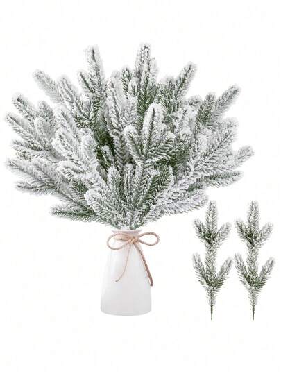 20支雪霜仿松枝,圣诞雪松针,仿绿松枝,适用于DIY手工艺品、花环、圣诞花环装饰、家居节日装饰、礼品盒、婚礼花艺布置、中国新年、手工花环圣诞装饰 - 彩色 - 查看 1