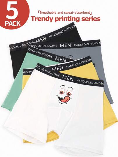 Snug Zone 5 件/包 男士简约撞色卡通印花平角内裤 - 彩色 - 查看 1