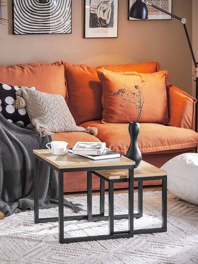 SoBuy FBT42-N,嵌套桌,2 件套咖啡桌边桌茶几,自然色和黑色 - 棕色 - 查看 9