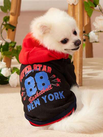 Sobokeboon 艺术家复古街头红色和黑色拼色宠物印花运动衫 1 件,节日 - 彩色 - 查看 8