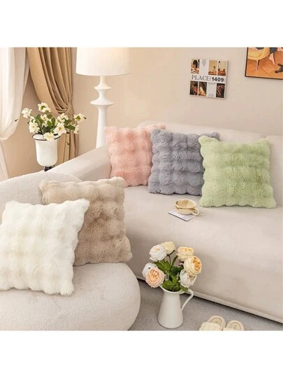 柔软仿皮毛装饰抱枕套,舒适靠垫套,适用于家居、卧室、沙发、办公室装饰,秋冬季 - 彩色 - 查看 17