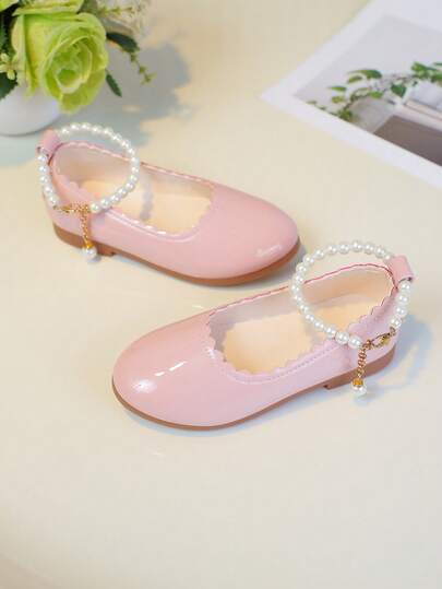 柔粉色珍珠边花卉装饰女童鞋 - 粉色 - 查看 1