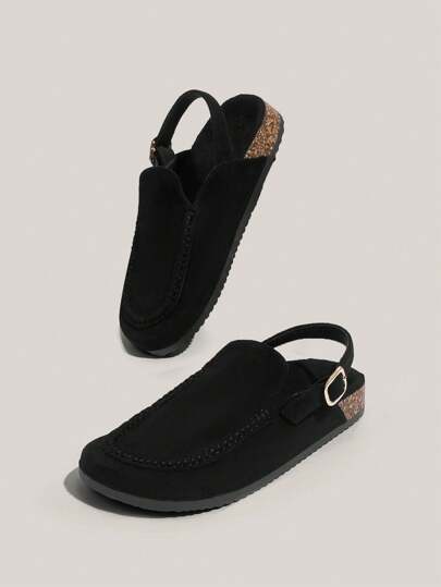 Solecia 女士单鞋露跟纯色平底穆勒鞋春夏季度假鞋夏季促销圣诞节秋季新年假期 - 黑色 - 查看 1