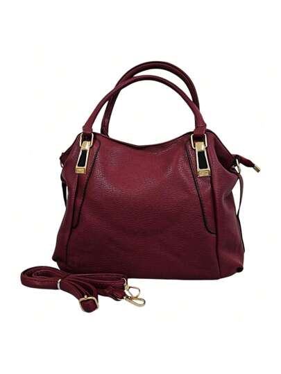 Solid Color Casual Tote Bag, Large Capacity Soft Faux Leather Zipper Shoulder Bag, Multi-Purpose Crossbody Bag, Double Strap Shoulder Bag, Buckle Decorated Shoulder Bag For Women, Streetwear Wallet