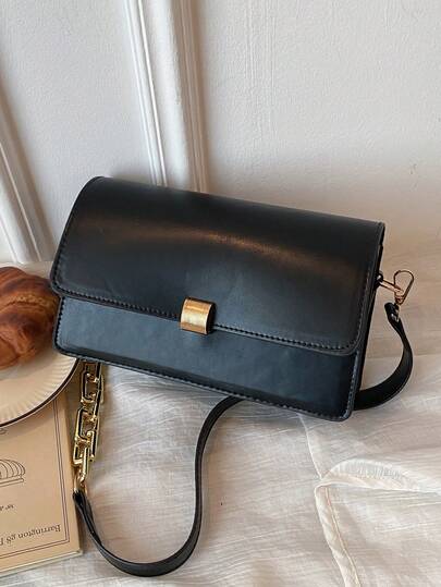纯色时尚奢华单肩包,优雅复古花卉翻盖钱包,PU皮斜挎包,女士日常通勤包