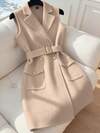EMERY ROSE 女士中长款羊毛混纺纯色大衣,翻领双排扣,冬季防风外套
