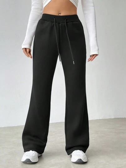 SHEIN Unity 純色束腰低腰運動長褲 - 黑色 - 查看 1