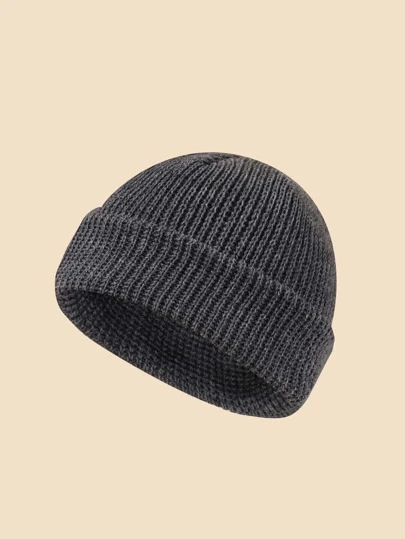單色折邊針織小鳥帽款,適用於寒冬及日常穿著,送禮或休閒之選。 - 深灰色 - 查看 1