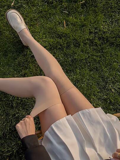 素色過膝襪 - 杏色 - 查看 1