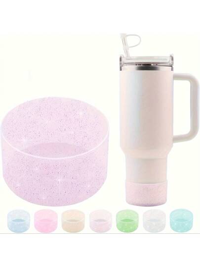 闪光硅胶保护套,适用于 20-40 盎司和 12-24 盎司的杯子配件,带 2.8-2.95 英寸防滑底盖保险杠,适用于水瓶杯和运动水壶,可作为礼物,防滑 Twinkle 杯套,礼物 - 紫色 - 查看 6