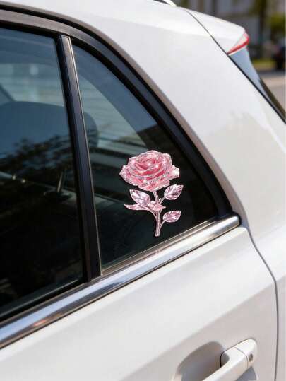 闪亮粉色水晶玫瑰汽车贴纸 - 闪亮水钻花朵贴花,适用于油箱、后视镜和车身,优雅的汽车内外装饰,送给妈妈、妻子、女友和伴娘的完美礼物,适合母亲节、婚礼和情人节。