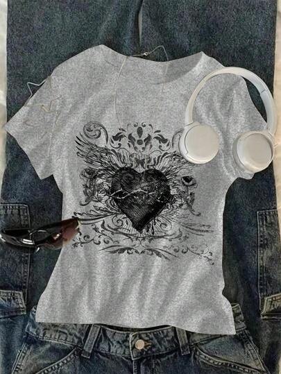 Sparklyn Tween 女童爱心印花休闲短袖圆领 T 恤