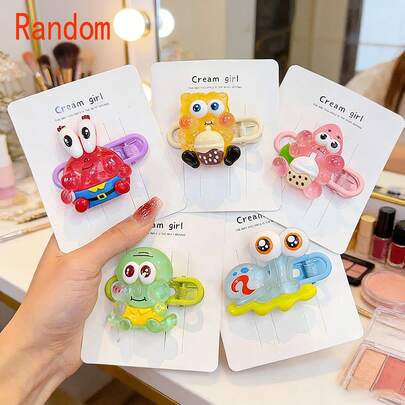 SpongeBob SquarePants 1/2/3个随机卡通树脂发夹,可爱卡通人物发饰设计,色彩鲜艳,日系可爱风格,适合学生、青少年和女性日常佩戴、派对装饰、返校季和节日礼物