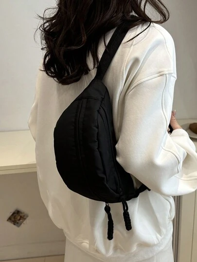 运动斜挎胸包爆款女士简约全能饺子包日系大容量休闲手机腰包 - 黑色 - 查看 2