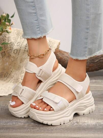 夏季運動厚底高跟涼鞋,柔軟舒適,適用於海灘和休閑場合 - 米色 - 查看 1
