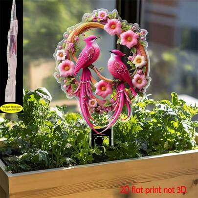 春夏限量版:2D平面设计,花环与小鸟图案,亚克力花园标牌,适用于户外装饰,如花盆、草坪、露台、花园艺术装饰,馈赠亲友,春夏装饰,2D平面工艺 - C - 查看 1