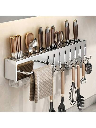 不锈钢厨房刀架,多功能壁挂式刀具收纳架,带筷子架 - 亮光 - 查看 6