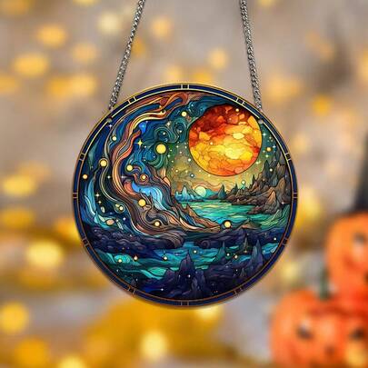 星夜阳光捕捉器,2D亚克力装饰品,梵高风格,圆形悬挂装饰,家居窗饰,星空风景,南瓜秋季装饰,节日吊坠,波西米亚风家居装饰 - C - 查看 4