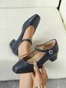 女士方头休闲舒适水钻扣粗跟软底工作鞋