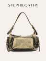 STEPHIECATHY 复古学院风女士单肩包,水洗PU皮革材质,拉链封口,多口袋设计,实用百搭,可斜挎携带,适合日常通勤、大学校园、旅行等多种场合。Y2K风格,2000年代时尚,波西米亚风,女士手提包,精美礼品。